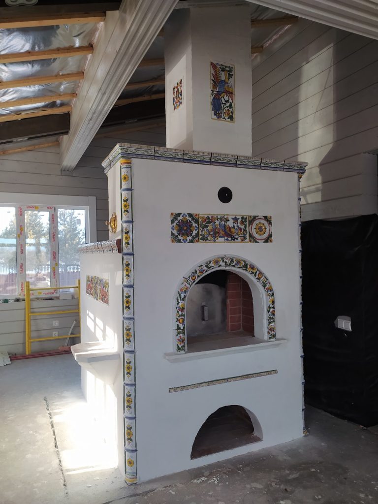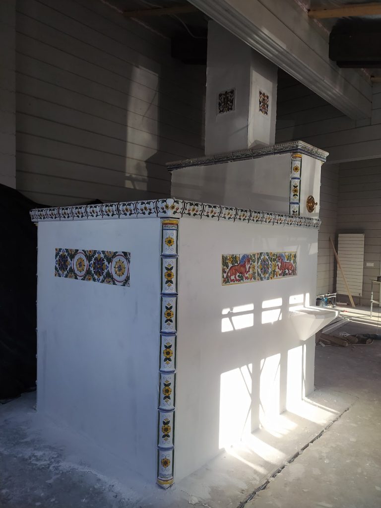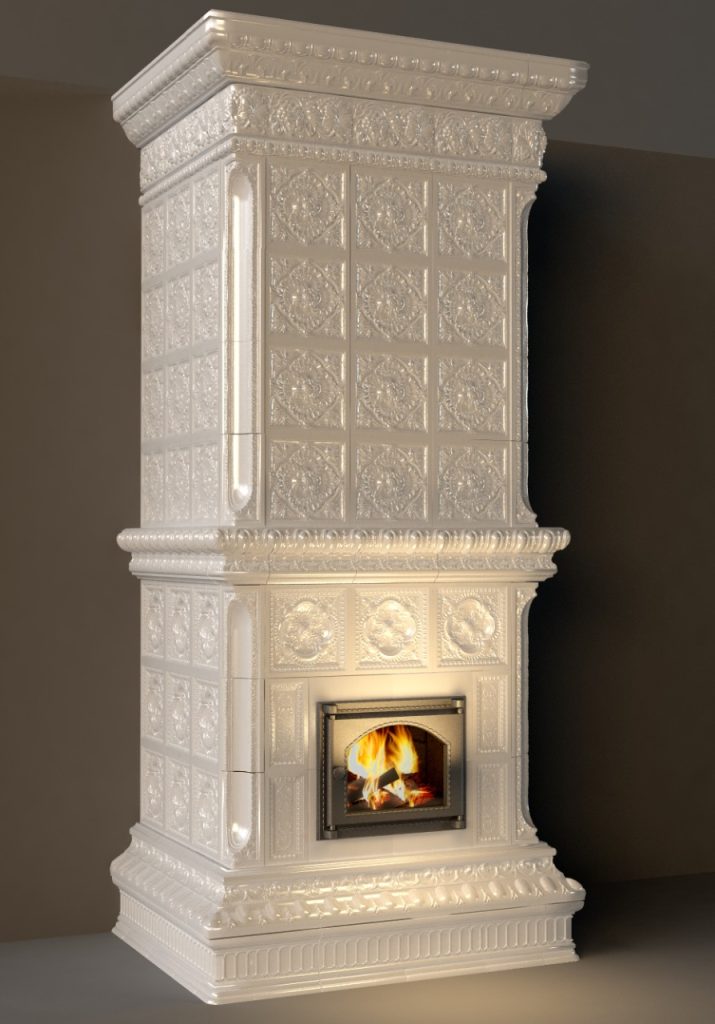 Облицовка печи “Василиса” – на выбор из коллекции керамогранита или в изразцах.